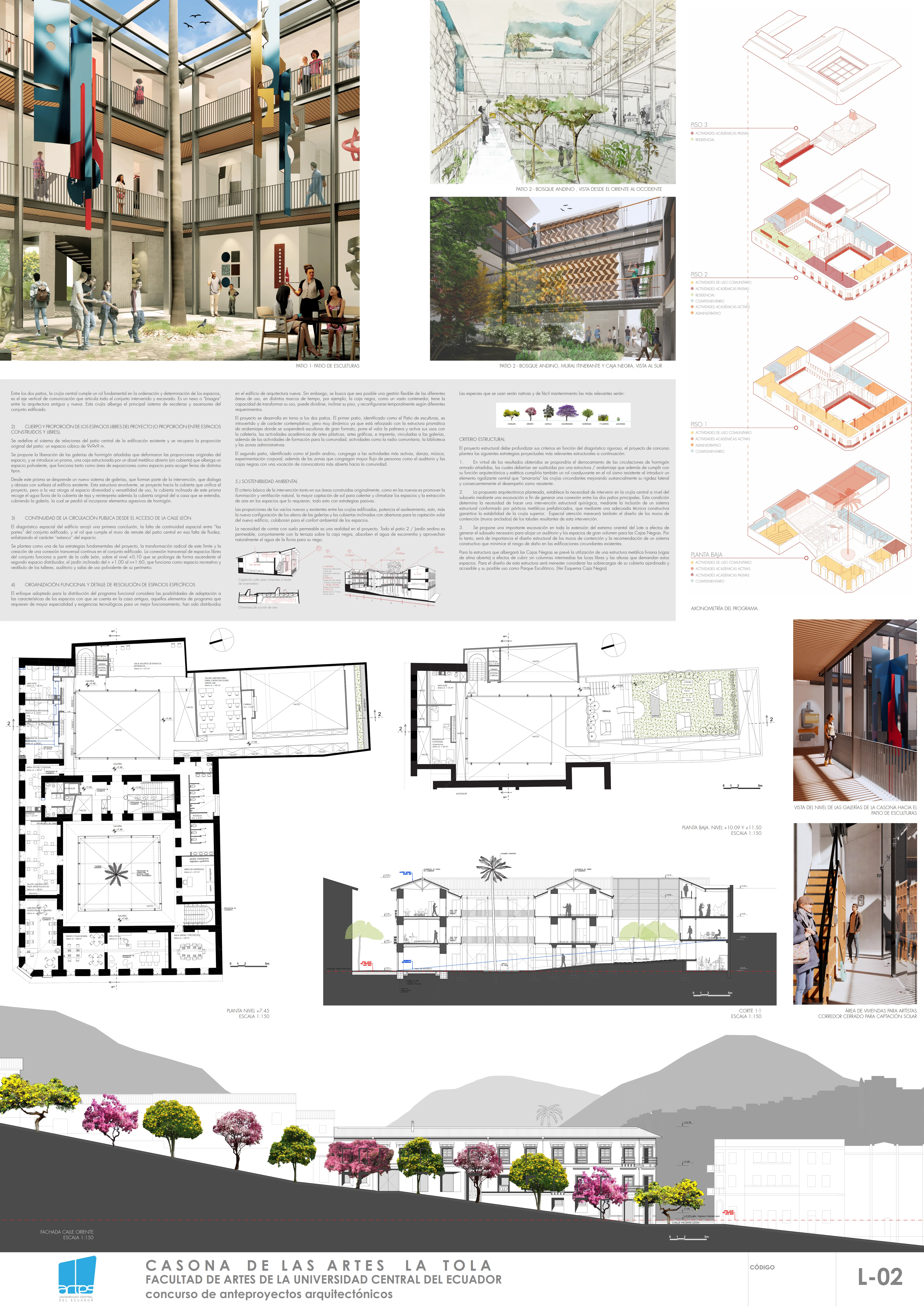 El Concurso Casona de Las Artes fue un concurso organizado por la Facultad de Artes de la Universidad Central del Ecuador que plantea el desarrollo de un equipamiento cultural en el que funcionen de manera orgánica espacios de formación en artes en conjunto con espacios de vida cotidiana. Un espacio de creación y encuentro. Un espacio alejado del ritmo de la industria cultural, concebido como un lugar de formación de creadores y de construcción de ciudadanía.